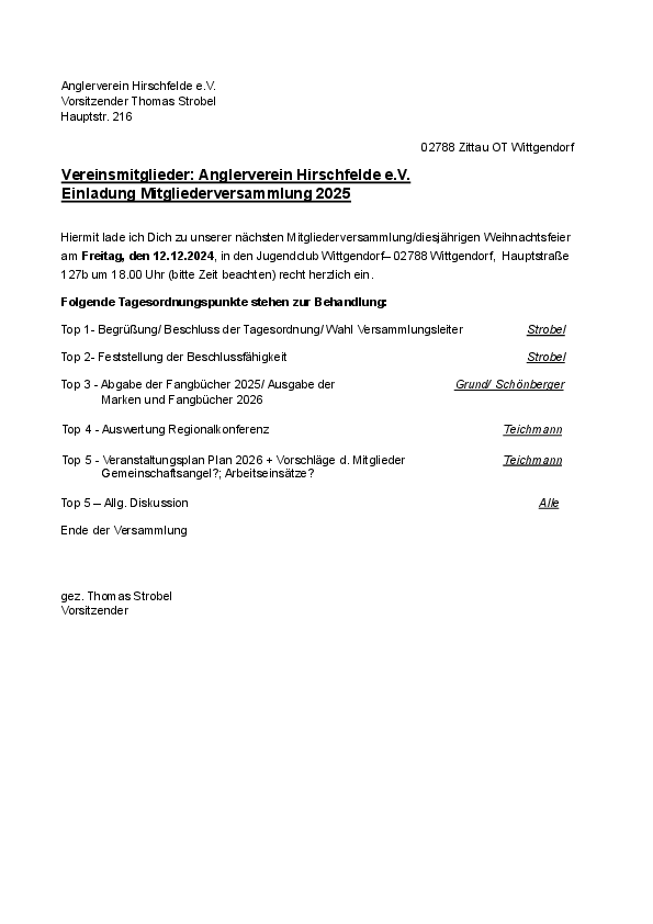 Beginn: 18:00 Uhr im Wittgendorfer Jugendclub Wichtig: Bitte an die Beitragsüberweisung denken!